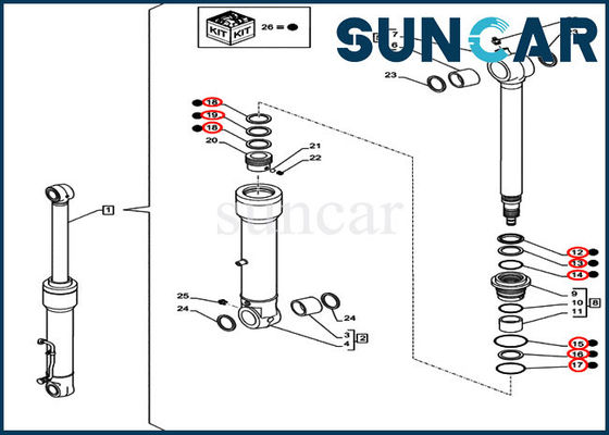 Dichtungs-Kit Cylinder Replacement Kit Fitss CX75C des Eimer-LZ00473 SR CX80C Kettenbagger KASTEN